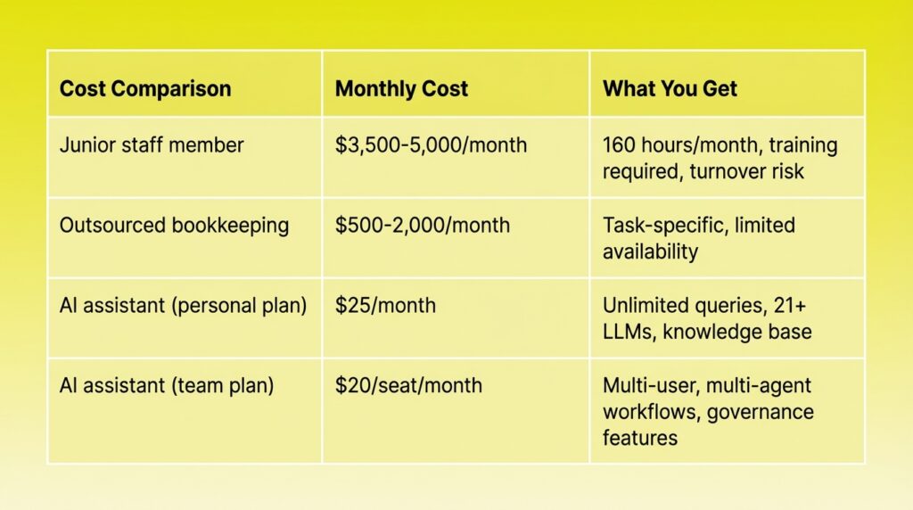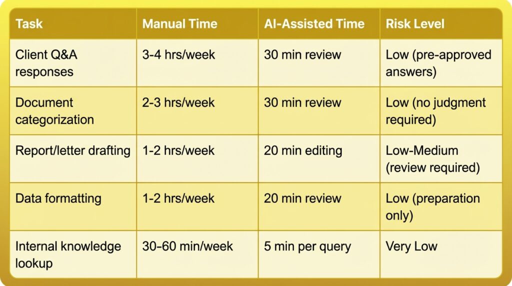 The key difference: an AI assistant doesn’t get tired at 11 PM during tax season and transpose digits. It also doesn’t get better with experience the way a human does. The review step is permanent, not something you phase out over time.