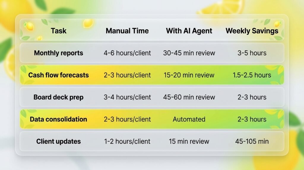 Here are the tasks AI agents handle best for fractional CFOs, ranked by time savings: